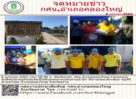 ร่วมมอบถุงยังชีพให้แก่ผู้ประสบภัยที่ได้รับผลกระทบกับพายุปาบึก ที่บ้านคลองตะเคียน หมู่ที่5 ตำบลไม้รูด อำเภอคลองใหญ่ จังหวัดตราด เข้าชม : [1026]