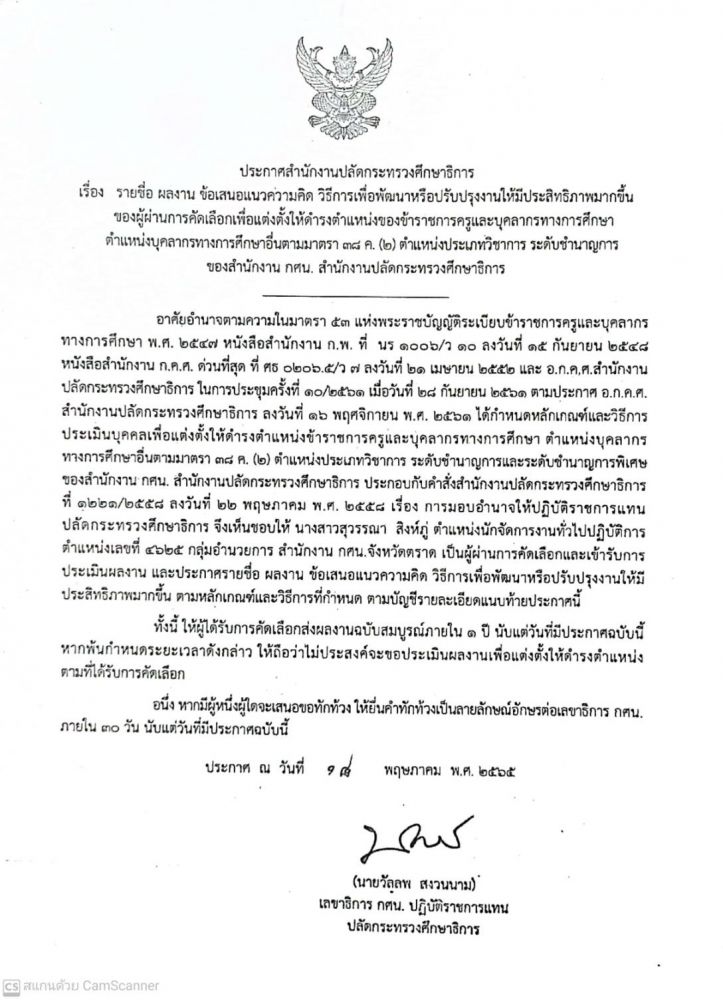 ประกาศสำนักงานปลัดกระทรวงศึกษาธิการ