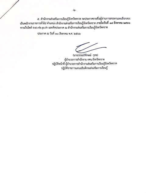 ประกาศสำนักงานส่งเสริมการเรียนรู้ประจำจังหวัดตราด เรื่อง แผนการส่งเสริมการเรียนรู้ของจังหวัดตราด (พ.ศ. ๒๕๖๘ - ๒๕๗๐)