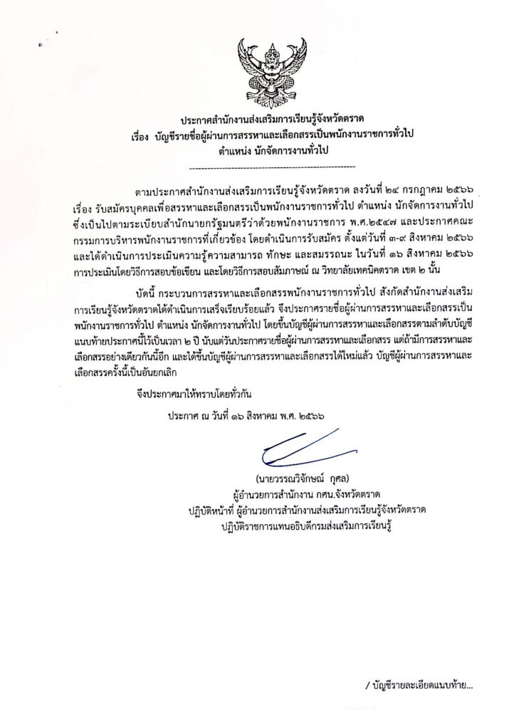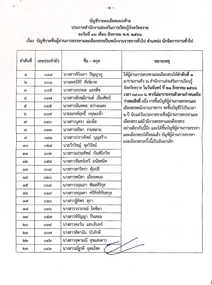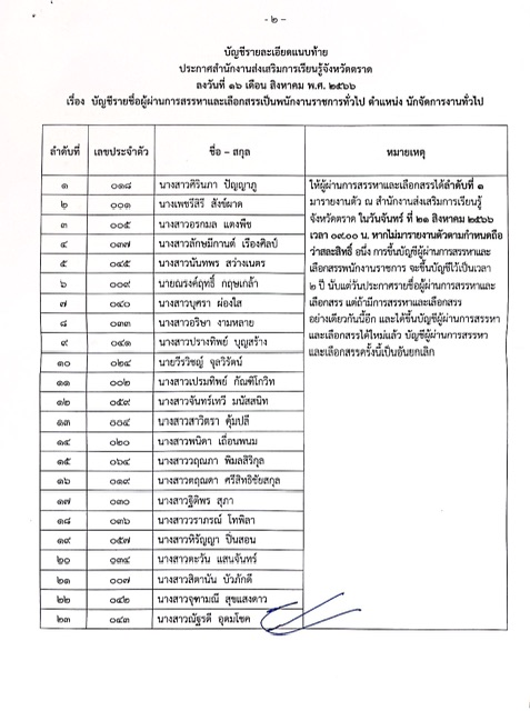 ประกาศ!! บัญชีรายชื่อผู้ผ่านการสรรหาเป็นพนักงานราชการทั่วไป ตำแหน่งนักจัดการงานทั่วไป