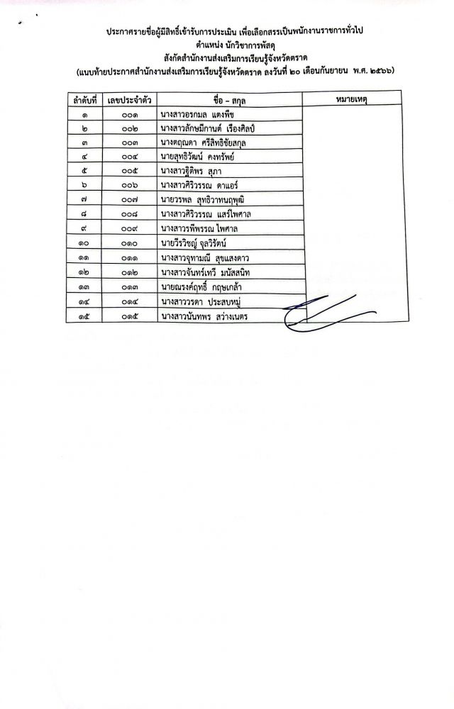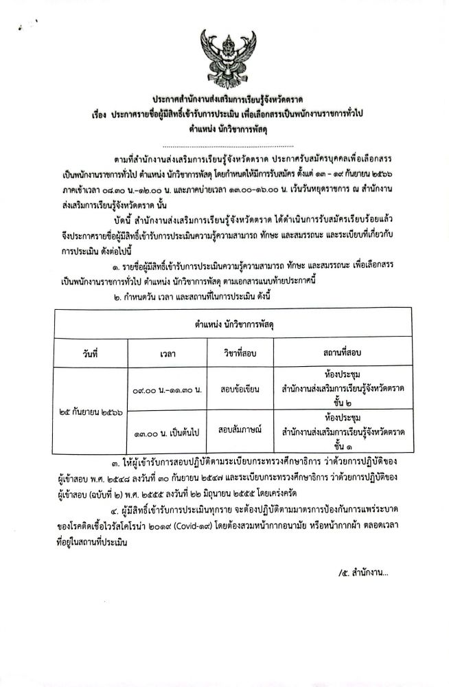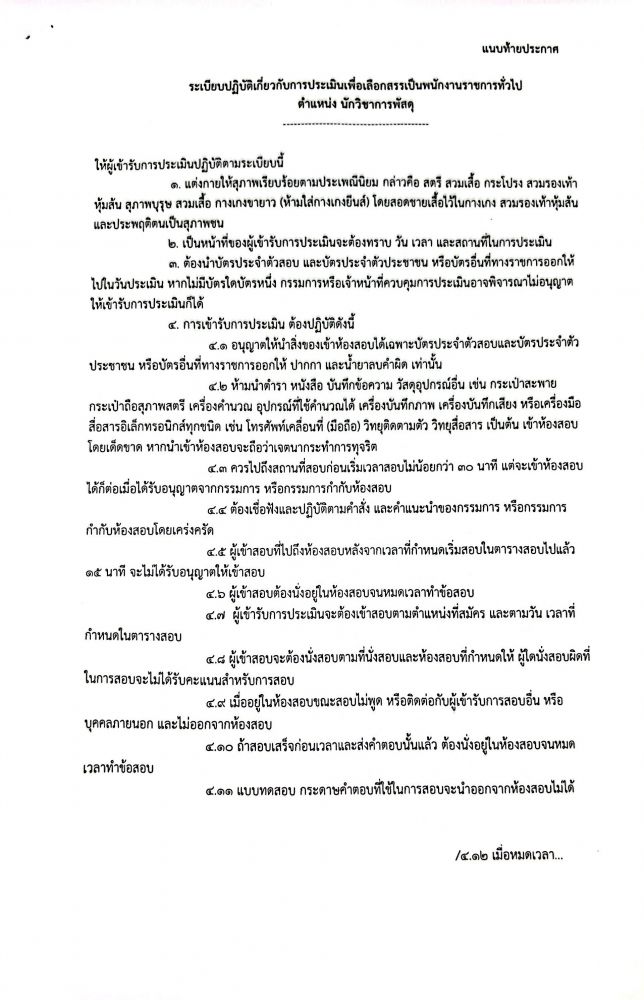 รายชื่อผู้มีสิทธิ์เข้ารับการประเมินเพื่อเลือกสรรเป็นพนักงานราชการทั่วไป ตำแหน่ง นักวิชาการพัสดุ