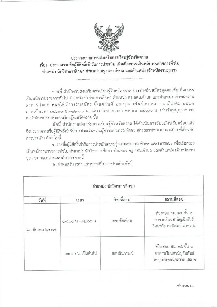 ประกาศสำนักงานส่งเสริมการเรียนรู้ประจำจังหวัดตราด เรื่อง แผนการส่งเสริมการเรียนรู้ของจังหวัดตราด (พ.ศ. ๒๕๖๘ - ๒๕๗๐)