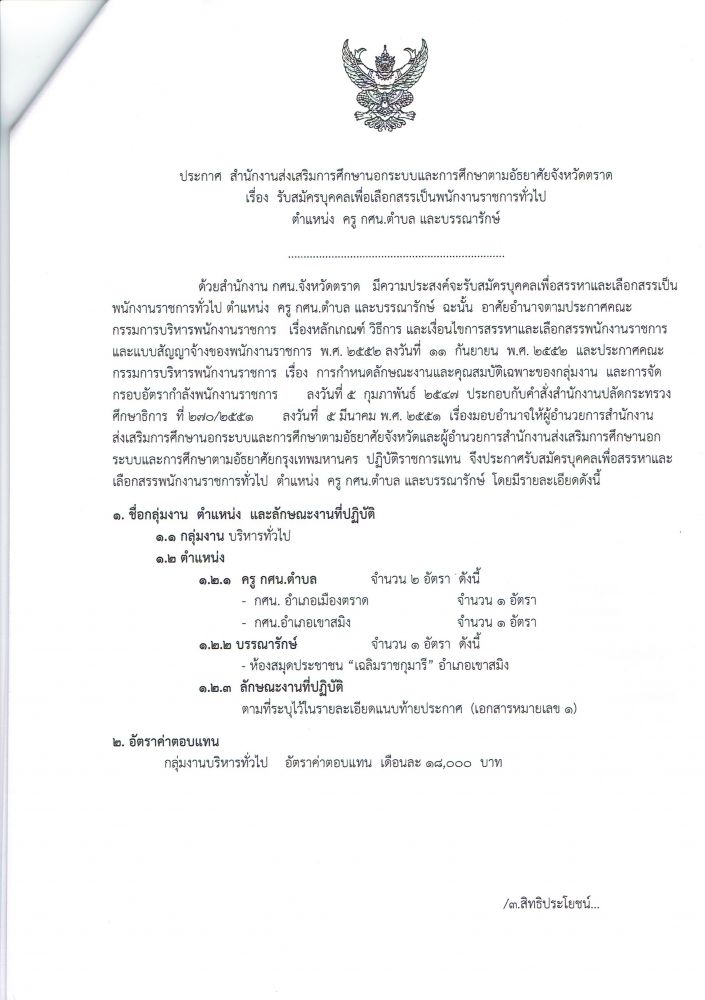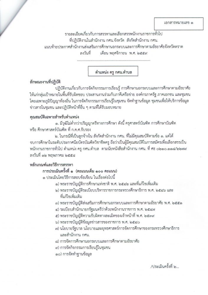 ประชาสัมพันธ์รับสมัครบุคคลเพื่อเลือกสรรเป็นพนักงานราชการทั่วไป ตำแหน่ง ครูกศน.ตำบล และบรรณารักษ์